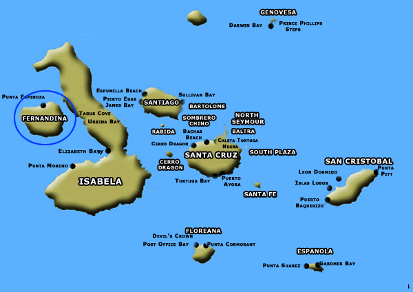 Location: Westernmost island, 275 kim northwest of Puerto Ayora, 25 km south of Punta Vicente Roca