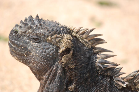 | Uplifting and lava flows issuing from the massive domed cone of Volcano La Cumbre have formed Fernandina the most volcanically active island in the Galapagos. Punta Espinosa is a jagged promontory of cracked and eroded lava, but the name could also refer to the hundreds of spiny marine iguanas that drape the rocks. Pristine nature under an active volcano and a highlight of any cruise. Flightless cormorants, Galapagos penguins, Galapagos sea lions, waders and the world's largest colony of marine iguanas thrive on the edge of a barren lava flow. Fine stands of mangroves support yellow warblers, Darwin finches, large billed flycatchers, Galapagos hawks and nesting brown pelicans. Snorkellers can watch green sea turtles and marine iguanas underwater and shallow lagoons attract sea turtles more sea lions, fish and rays visible to landlubbers. Fine examples of lava cactus and pahoehoe lava.
