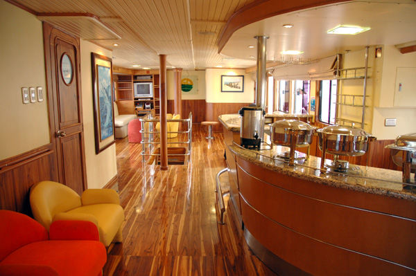 The Galaven I is and excellent choice for your Galapagos Island cruise. An unbelievable experience awaits you on this magnificent ship. The Galaven I accommodates 20 passengers in double occupancy suites or twin rooms. There are 3 cabins with matrimonial beds. All the cabins have ocean views, air conditioning and private bathrooms. There are large outdoor areas for relaxing and sunbathing.