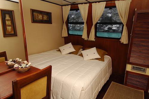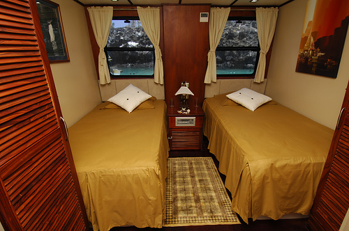 An amazing Luxury Class Catamaran with a Great Itinerary. The Anahi is a Power Catamaran built in Guayaquil, Ecuador in 2006, taking into account the highest standards of luxury and comfort. The Anahi offers comfortable accommodations in 6 standard cabins (14 m2 / 151 square feet, each) located on the main deck and 2 suite cabins (25 m2 / 193 square feet each) located on the upper deck. All cabins have individual climate control and feature private facilities, locker and closet. Among its ample social areas, she has a comfortable dinning room, an outside bar located in the upper deck, and a living room equipped with TV, a DVD player, and a stereo system. All this complemented with a Jacuzzi and a spacious sun deck offering a great view of the Galapagos Islands landscapes. | |