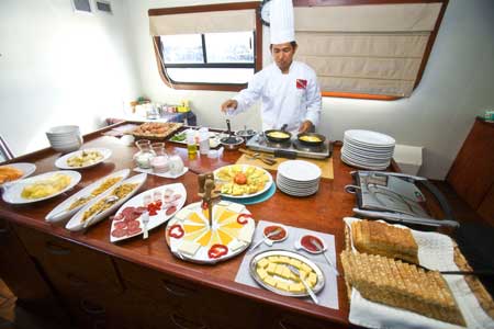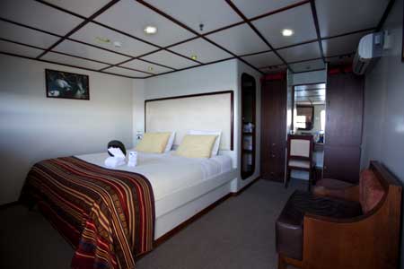 | The Luxury Catamaran Athala II was designed to cruise the Galapagos Islands in style. The elegant design provides enhanced comfort, stability, and the Athala meets all the latest safety standards. The Athala II is an excellent choice for your vacation to the Galapagos islands. You will be impressed with the generous accommodations and amenities of a larger boat while still preserving the relaxed exclusivity of a smaller vessel. All cabins on board have air conditioning and feature portrait windows. The main deck rooms also have the additional luxury of a private balcony. |