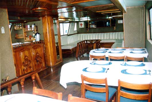 You will find the Darwin is a comfortable and affordable yacht to experience the Galapagos on. She has a dining room / living room area, bar, and spacious deck where you can take sun. The cabins are for two people with bunk beds. The Darwin also has scuba diving options for 2 or more certified divers! This is a great choice for the budget minded traveler. | |