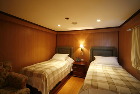 - Cabins: 16 cabins, private bathrooms, AC, safe, storage