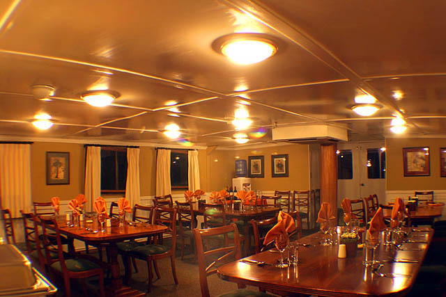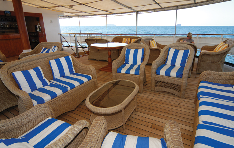 - Facilities: Lounge, bar, lecture facilities, library, indoor and outdoor dining, sundeck, hot tub, sea kayaks, snorkeling equipment