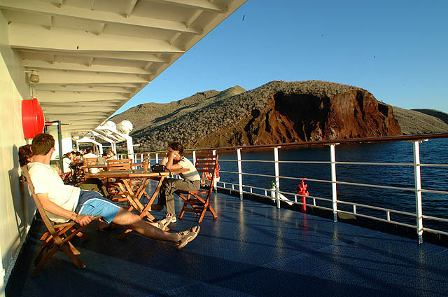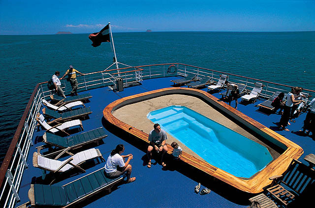 The Legen is designed specifically for cruising the Galapagos Islands, the Galapagos Legend offers all the amenities of a larger cruise liner yet still has the intimate feel of family-style cruising. This 300-foot Galapagos cruise ship provides all the facilities and services to make your cruise around the islands enjoyable and comfortable. The Galapagos Legend has a capacity for 90 passengers and all the services of a cruise liner while remaining small enough for that intimate experience with nature that first attracted you to the Galapagos Islands. Its fully carpeted luxurious cabins have ocean views, closets, their own private bathrooms, hot and cold water, hair dryers, safe deposit boxes and other amenities. |